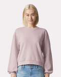 American Apparel Ladies 7.6 Ounce Crewneck Sweatshirt. 7.6 oz/SqYd, 31/1. 70% combed ring spun cotton, 20% recycled polyester, 10% polyester. 3-end lightweight fleece made using a portion of recycled polyester. 100% combed ring spun cotton face for cotton friendly decorating techniques. Made with OEKO-TEX certified low-impact dyes. 1” Rolled back dropped shoulder seam for added decoration. Back neck patch for easy customization. Balloon sleeves. 1x1 rib with spandex for enhanced stretch and recovery. Boxy fit, slightly cropped, side seamed body. Recycled tear away label.